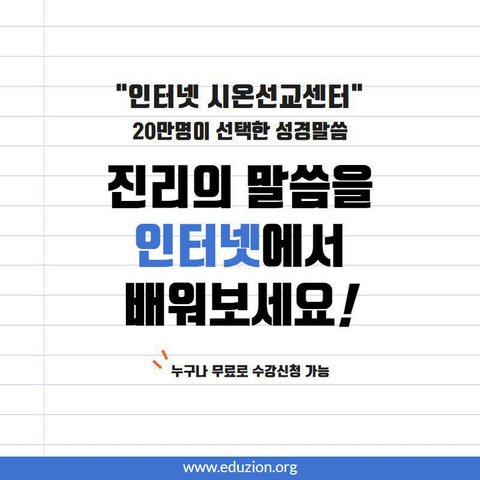모든 분들께 신약이 이루어진 계시말씀을 전해 주고 싶습니다