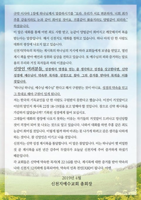 ■ 성경말씀을 중심으로 하는 교회, 신천지 예수교회 기사