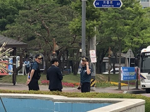 뒤를 돌아보니 경찰 기동대 버스도 와있고 공원엔 경찰수색대도 포착되었다