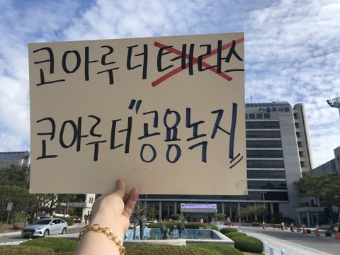 충주시에서 한국토지신탁이 처음부터 내 집앞 테라스를 공용녹지로 사업허가낸 것을 승인해줬고