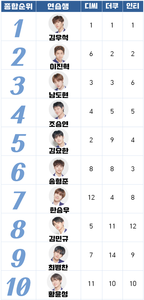 최종 1위 업텐션 멤버들 싸움되고 데뷔조에 절반이 중고 평균나이 23은 될듯...프듀가 언제 더유닛이 됐지?