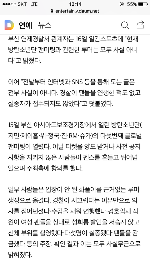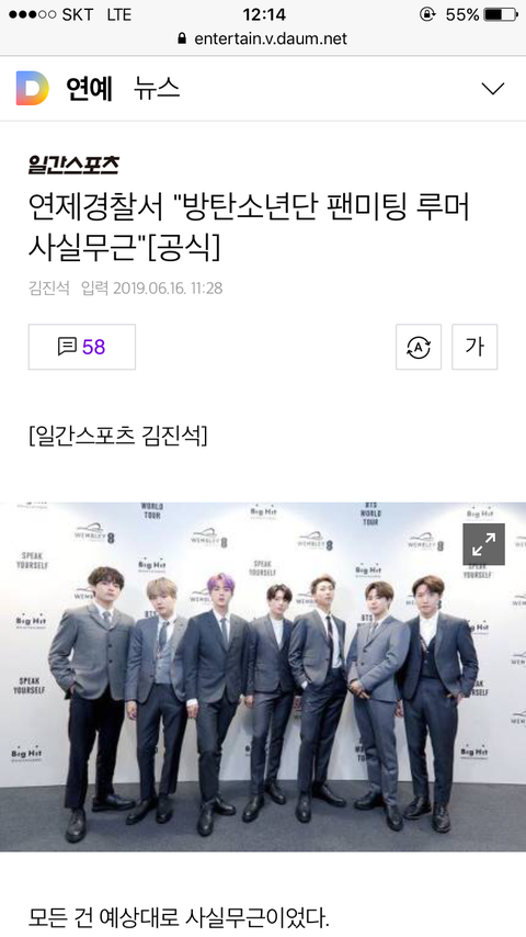 공식입장 사실무근으로 기사남