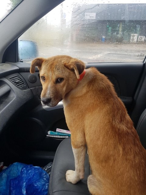 병원가는 차안에 얌전히 앉아 밖을 내다보며