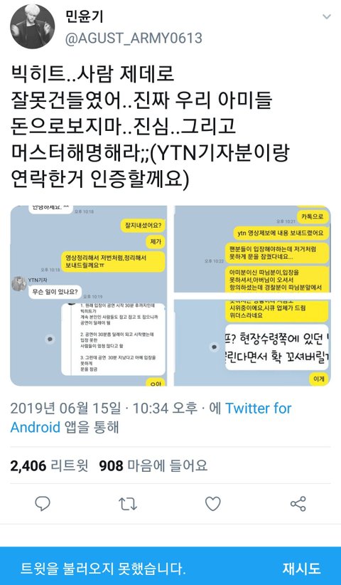 플미충들과 무뇌인증한 일부아미들덕에 엿먹은 빅히트와 덩달아 욕먹고있는 방탄