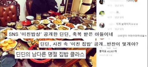 딘딘이 예전부터 집밥상 사진 올린 적있는데 임금님 수라상 저리가라였음