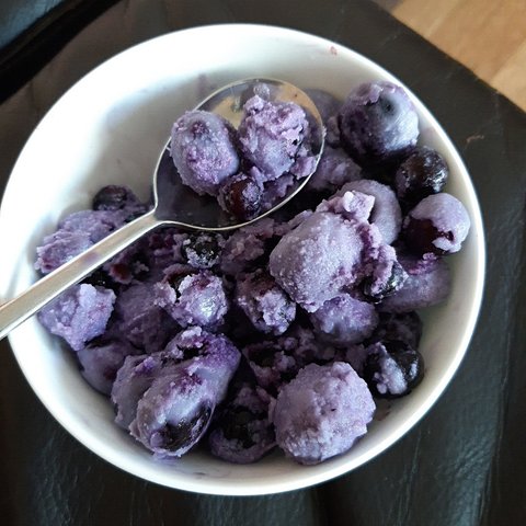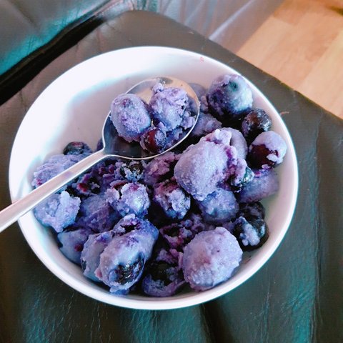 냉동블루베리에 우유 넣고 좀만 섞어주면 블루베리 냉기때문에 우유 얼어서 샤베트 돼! 더워서 해봤는데 의외로 존맛탱