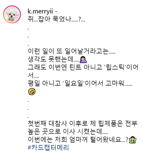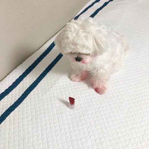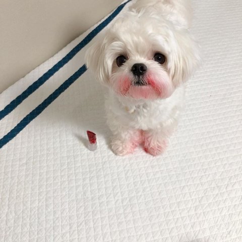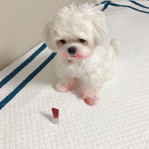 오늘자 립스틱을 먹어버린 하얀 말티즈