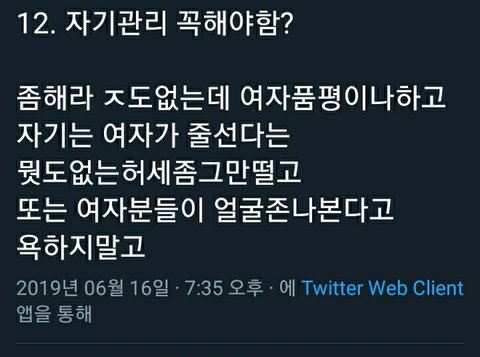 설명충) 이 분은 남자들을 위해 자기관리 하는 법을 올리심 기초화장, 색조화장, 머리, 면도 등등을 타래로 올림 그러던중 이런 말을 하심
