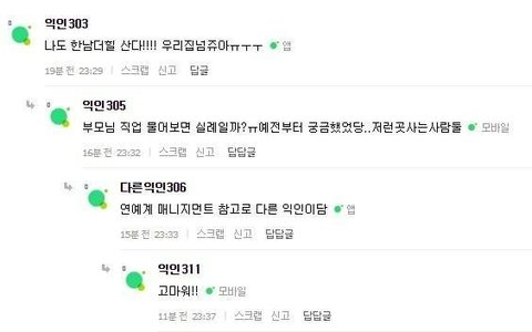 저 남친 직업글 어제 인스티즈에 다시 박제된 상태로 돌아왔는데 댓글은 다 엥 진짜 연예인이고 다 대기업 직원일 수도 있지 이거임 저기는 이미 미쳐서 말 안 통함