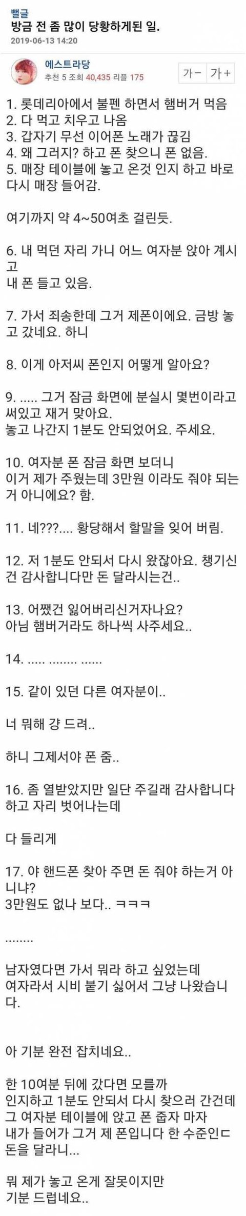핸드폰 주워줬다고 3만원 요구하는 사람