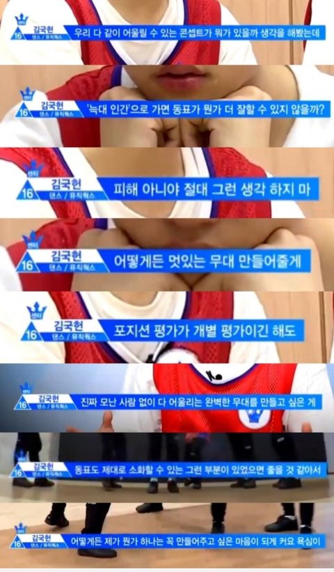 트레이너에게 혼났던 연습생을 위해서 컨셉 제안부터 그 친구도 제대로 소화할수 있는 부분이 있었으면 좋겠다는 욕심도 보여줬던, 듬직한 센터 김국헌임