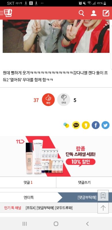 아침 10시까지 댓글 하나 있던걸 추반조작 강까줌마 지가 추천박아서 베플 올려놓고 톡선 왜 갔냐고 정치질 쟤는 진짜 한 많이 쳐 먹고 강다니엘만 쫓아다니는데 하는짓 너무 극혐이야 가서 못난 니 새끼나 빨아라 정치질 거짓말 너 추해서 못 봐주겠어