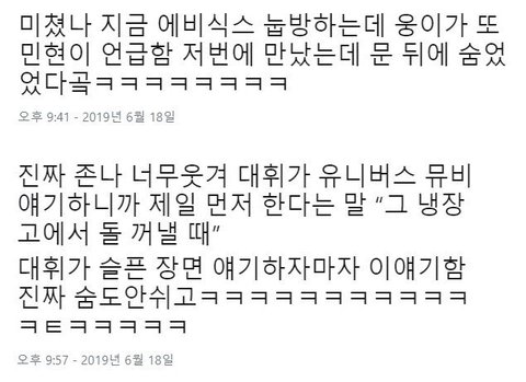 라이브방송에서도 무한 민현교 신도의 모습을 보여준 전웅ㅋㅋㅋㅋㅋㅋ