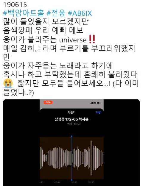 팬싸인회에서 팬이 요즘 많이 듣는 (혹은 부르는) 노래를 알려달라고하니까