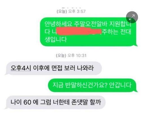 나이 60을 콧구녕으로 쳐드셨나ㅡㅡㅋ 암만 상대방 나이를 알고 어려도 얼굴도 안본사인데 반말찍찍은 머꼬ㅡㅡ