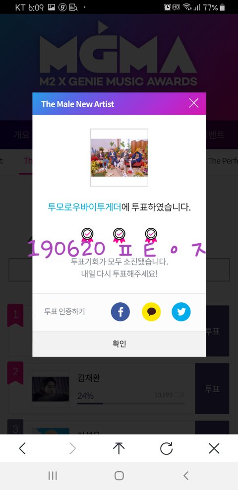 남자 신인상 엄청 치열할 것 같더라ㅜㅜ 투표기간도 길어서 힘들텐데 힘내!