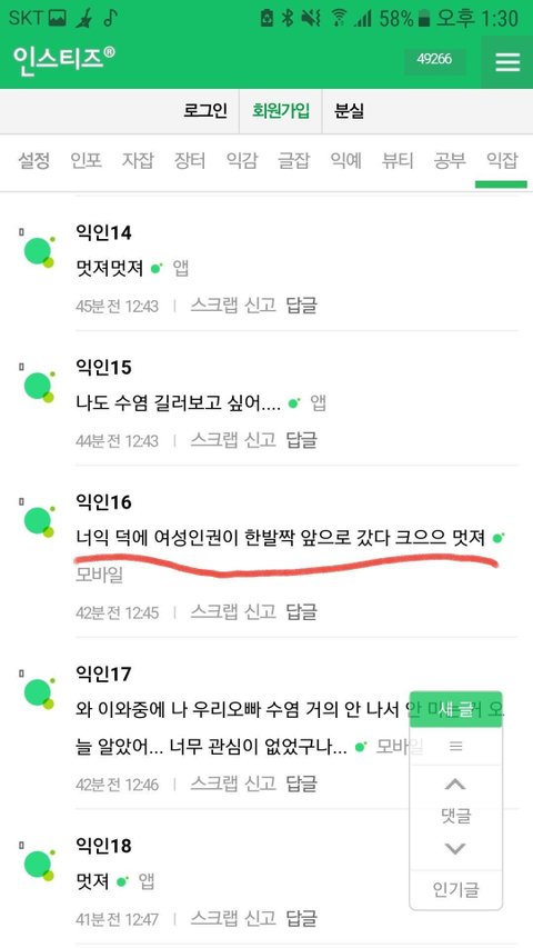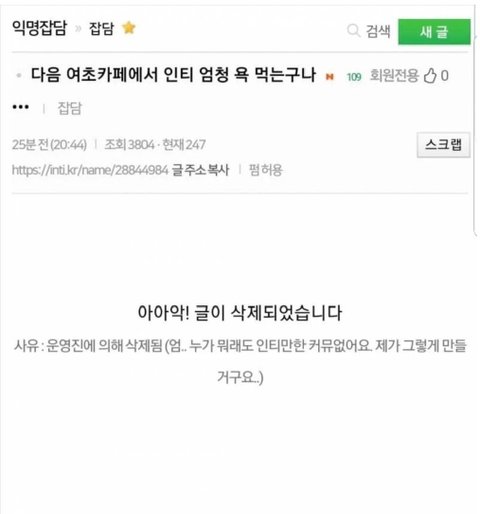 인스티즈가 폐쇄적이고 유료가입 해야하니까 판 애들 환상이 많은데 정말 하지마 어후ㅠㅠㅜㅜㅠㅠ 남초 수준으로 여혐함