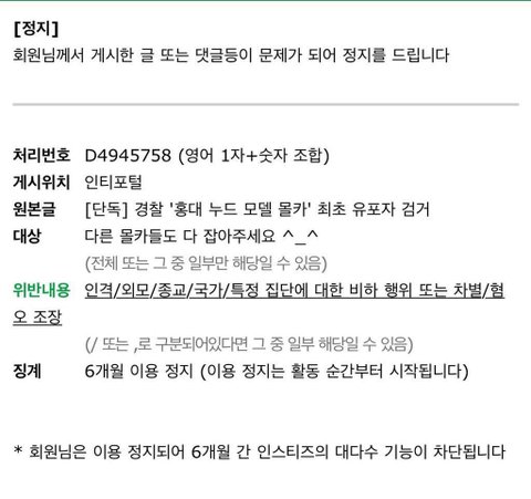 몰카범 다 잡아주세요 ^_^: 6개월 정지