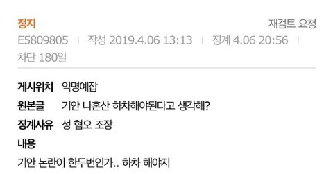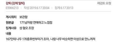 170중후반 부터가 좋아: 성 혐오 조장으로 6개월 정지 (영자가 키작남이니?)