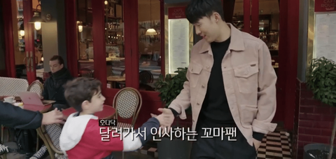 지나가던 꼬마가 손흥민을 발견함