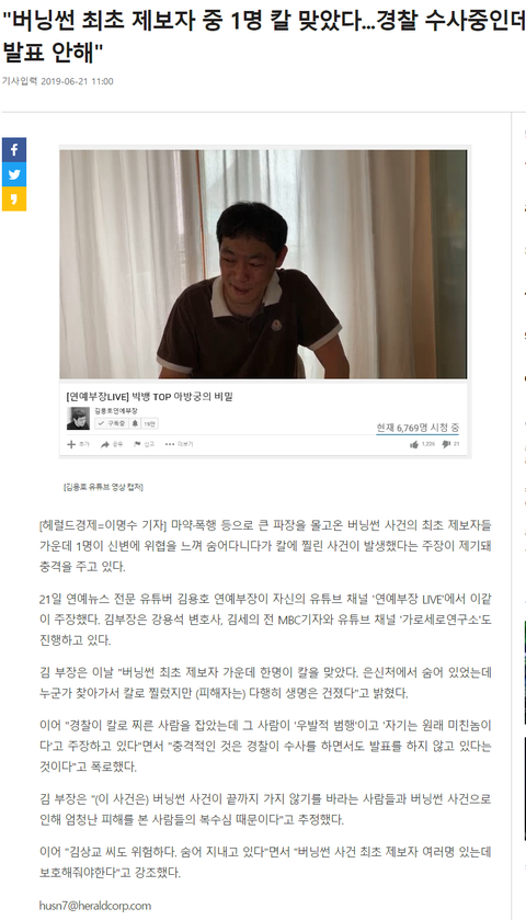 특종!!! 버닝썬 제보자 칼맞음 경찰 은폐??? ㄷㄷㄷㄷㄷㄷㄷㄷ
