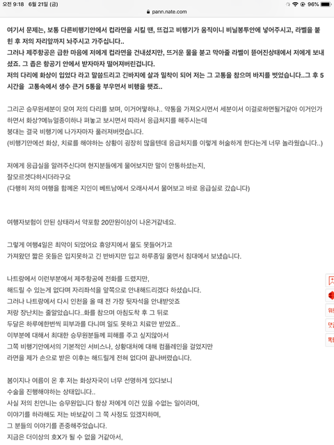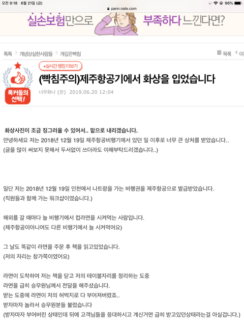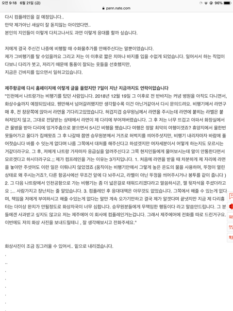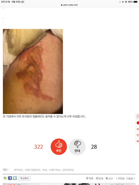 (빡침주의) 제주항공 화상 글 지웠네 ㅋㅋㅋ