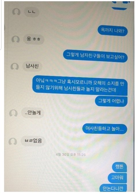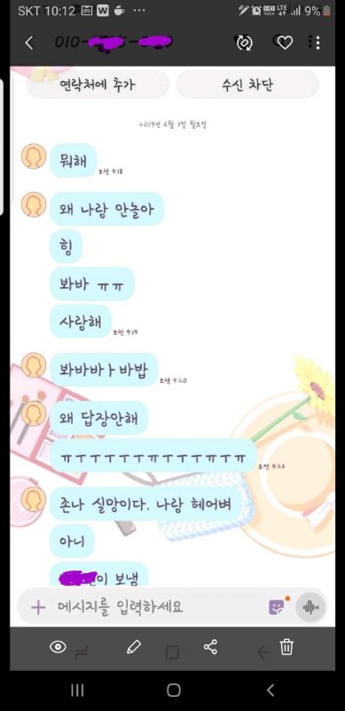 아들이 05년생인데 여친과 아래와 같은 페메를 주고 받았습니다. 당장 헤어지라고 했더니 알겠다고 말은 했습니다. 하지만 들킨 지 한달이나 지난 지금 그 여친이 아들을 아파트까지 데려다주는 것을 목격했습니다. 지금도 헤어지겠다는 말은 절대 안하네요. 아들 말로는 여친이 술이나 담배를 진짜로 하는 게 아니라 '장난'으로 한 말이고, 콘돔 역시 '장난'으로 산 거고 딴 생각은 없었으니 자기 여친은 정상범주에 드는 친구랍니다. 백번 양보해서 술 담배에 관한 언급이나 남친 앞에서 콘돔 사는 행동이 장난이었다고 해도 선을 넘는 일이라고 했더니 '엄마랑 아빠가 나이가 많아서 그렇다, 요즘 애들은 이렇게 농담한다.' 이런 반응입니다. . 아들이 지금까지는 너무 착한 아이였습니다. 어떻게해야 정신을 차릴런지 아이랑 같이 보려고 하니 여러분의 의견 부탁드립니다.