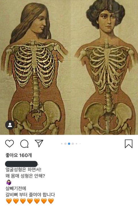 실제로 미국이나 동유럽, 남미에서는 종종 하고 있는 수술입니다. 당연한 말이지만 치료적 목적보다는 미용적 목적으로 시행되는 수술이고 외국 인스타 계정 중에서 허리가 비정상적으로 가는 사진이 있다면 해당 수술을 받았을 가능성이 있습니다. 우리 몸은 갈비뼈가 12개로 이루어져있는데 true rib이라고 불리는 갈비뼈는 해부학적으로 뒷부분은 척추뼈에 붙고 앞부분은 복장뼈에 붙어서 고정됩니다. 그렇게 폐, 심장, 간과 같은 주요 장기들을 보호합니다. 그러나 floating rib이라고 불리는 11,12번 갈비뼈는 앞부분에 복장뼈나 연골조직과 맞닿아있지 않아서 그나마 제거하기가 용이합니다. 글쓴이분께서 언급하신 rib reduction surgery는 해당 갈비뼈를 제거하는 발식입니다. 스스로 복장뼈가 밑 부분인 배 윗쪽을 눌러보면 옆부분에 갈비뼈가 있는 걸 만져볼 수 있는데 그 뼈들을 제거한다고 생각하시면 됩니다. 등쪽으로 절개를 해서 뼈를 잘라서 제거하는 방식입니다. 가격은 미국 기준으로 천만원 정도 한다고 하네요.