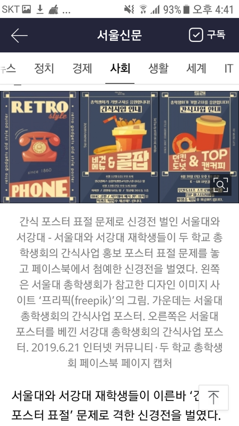 1. 서강대 총학이 서울대 총학 간식나눔 포스터를 베낌