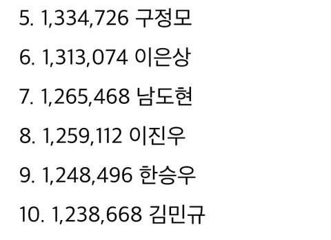 지금 10위권에 민규랑 몇명 빼고 다 베네핏이라 민규가 밀린거였어ㅋㅋㅋㅋㅋㅋㅋㅋㅋ