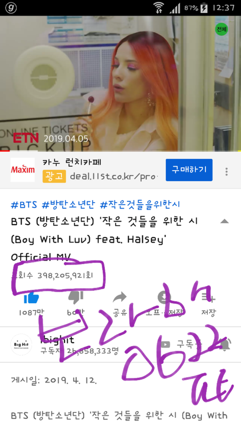 서스터 축하축하. 난 작은시 4억뷰 간다!!!