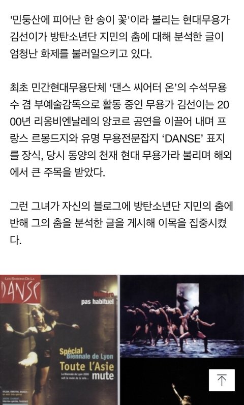 이삐들아 이분 진짜 현대무용가로 국내는 물론 해외에서도 엄청 인정 받는 분이신데 이렇게까지 우리 지민이를 극찬하셨어ㅠㅠ