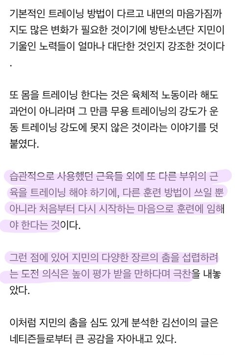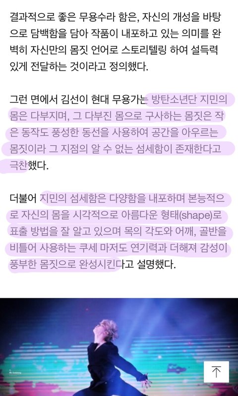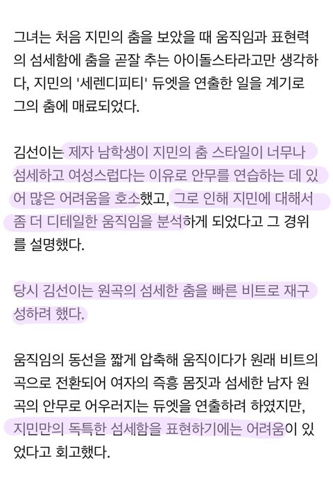 진짜 너무 너무 대단한 일이고 이 분 글 읽으면 이삐들이 잘 몰랐던 지민이 춤에 대해 이해하는데 도움이 될거야!! 내가 기사 줄친거는 아무 의미 없다ㅠㅠㅠㅠ 꼭 다 읽어봐!!!!