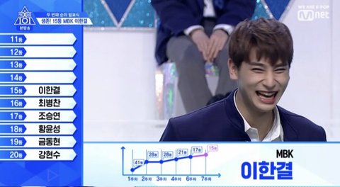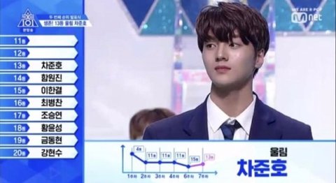 1주차 4등이후로 계속해서 순위가 11-15 사이를 왔다갔다 ... 정말 데뷔를 할들말듯 정병존 갑은 차준호인듯 하다