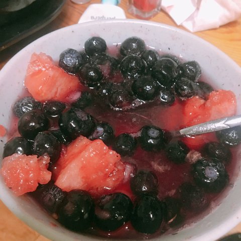 저녁안먹어서 먹는거양.. 지금 냉동블루베리 + (사이다 없어서) 갈배사 + 수박 씨 빼고 섞어먹으면서 와썹맨하고 워크맨 보는중 ㅎㅎㅎㅎ 비주얼은 좀 이래도 맛잇다 ㄹㅇ 얼음 좀 생기는데 존맛