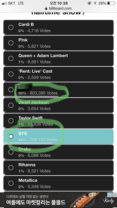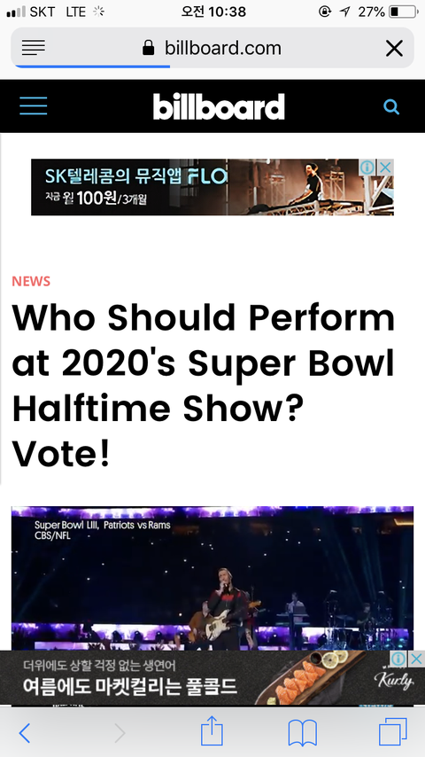 2020년 하프타임 공연 투표야