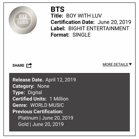 R-IAA(미쿡레코드협회) 두번째 플래T넘 획득! 올해 발매된 곡들 중 단 9곡만이 받았는데 그 중에 작은시가 있다!!!!! 이제는 막 두달만에 이런거 받아도 되는거야?ㅎㅎㅎㅎㅎㅎㅎㅎㅎㅎㅎ 이래서 억으로들이 자꾸 설치는가싶고 그러네^ㅁ^ 하여튼 축하해 얘들아!!!!!!