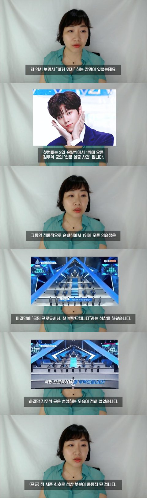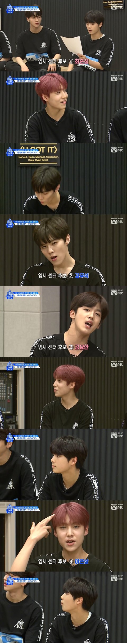 센터 선발을 위해 한명씩 노래를 부를 때 김우석 혼자만 연생들 리액션 안들어감-