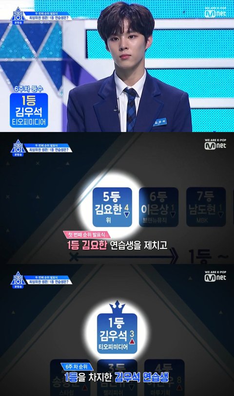 1위를 한 김우석 연습생은