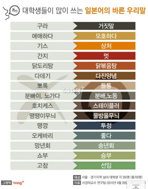 일상생활에서 많이쓰이는 일제잔재어