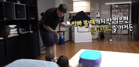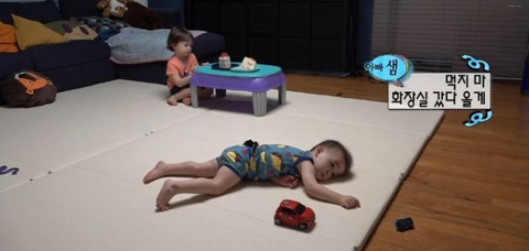 아빠가 잠깐 화장실을 갔다올테니