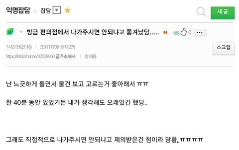 방금 편의점에서 나가주시면 안되냐고 쫓겨났당...