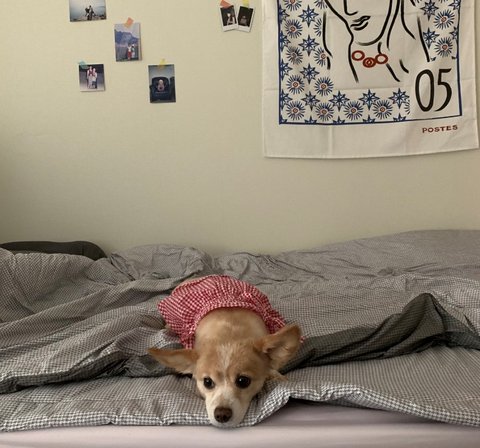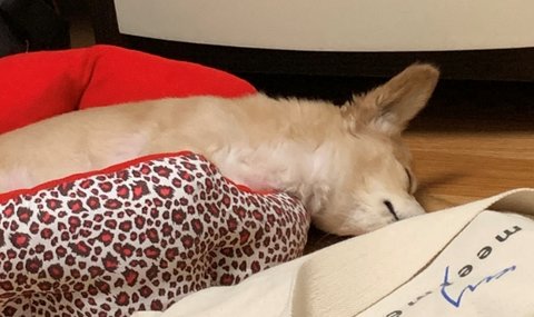 집 오자마자 씻기고 보내니 바로 침대에 올라가서 누워있는즁이에요 ㅋㅋㅋ