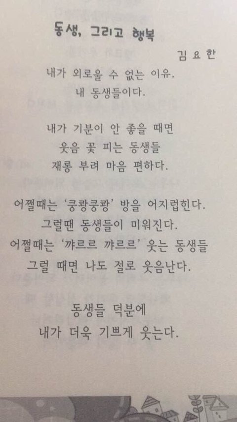 이건 김요한이 쓴 시?인데 동생들 사랑하는 마음이 딱봐도 보임