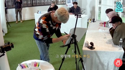 멤버들 격려해주고 예술가 착장으로 열심히 그림 그리는 태형이