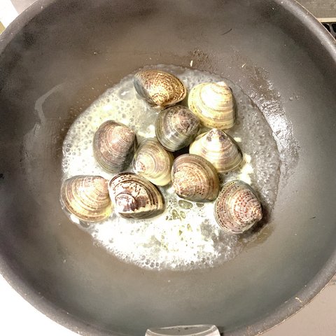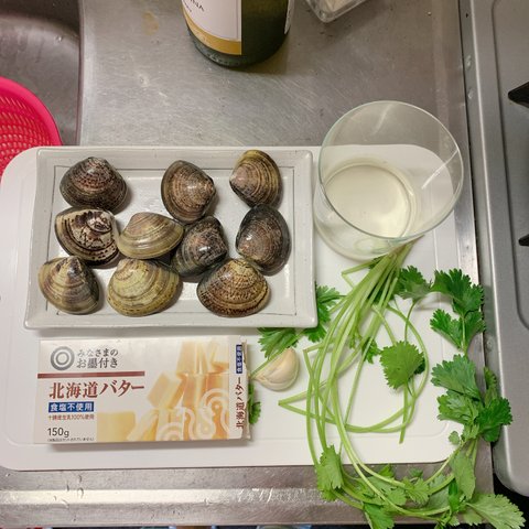 재료 : 백합1팩(늦은 시간이라 먹기 편한 걸로),마늘 몇쪽, 화이트 와인 조금, 버터, 고수(또는 좋아하는 야채)