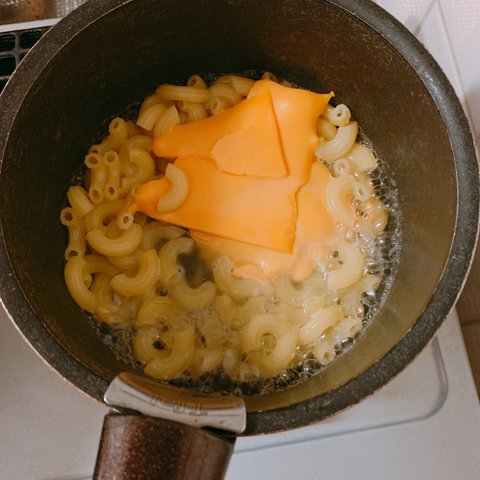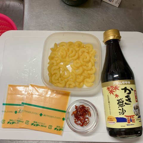 재료 : 마카로니, 다시 간장, 체다치즈 2장, 칠리