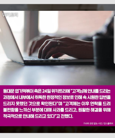 그러나 제가 처음 들었던 응대는 "본사차원에서 별도로 조사하는 것은 없고 관련 부서에 문의를 넣는 것 밖에 할 수 있는 게 없다"라면서 "그 관련 부서에서 '알 수 없다'는 답변을 들어 더 할 수 있는게 없다"였습니다. 제가 귀를 의심하며 수차례 되물었을때도 동일한 답변만 반복했습니다.