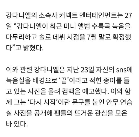 강다니엘, 7월 솔로데뷔 확정...미니 앨범 발표
