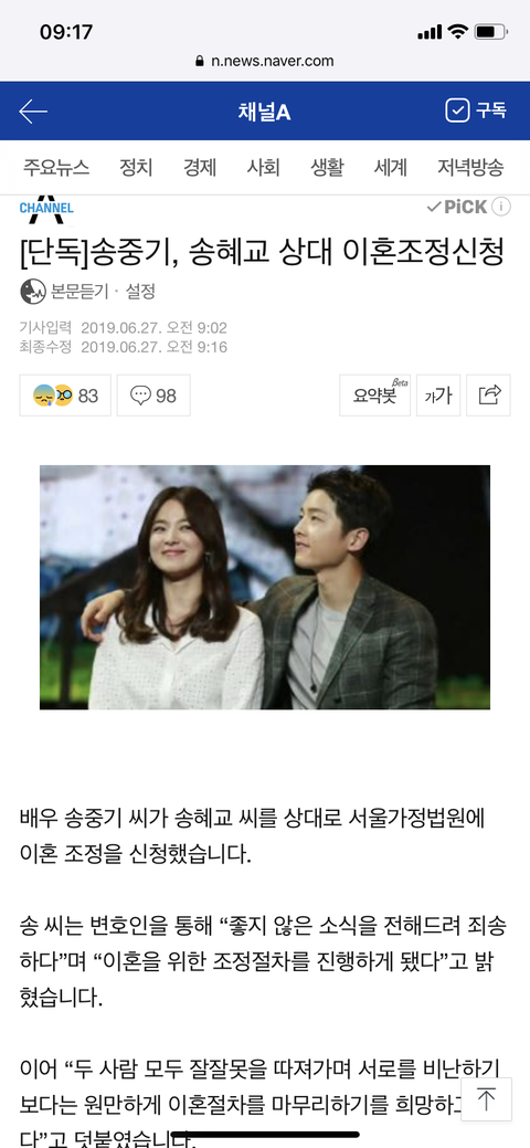 개인적으로 나도 단순 성격차 때문만은 아닐 것 같은데 송중기가 송혜교 엄청 좋아하고 팬인 거 결혼 전부터 티냈었는데 설마 성격 좀 안 맞다고 이혼까지 하면서 저런 식으로 강경하게 입장을 낼까... 다만 송중기 집안이 생각보다 엄청 가부장적인데 송혜교는 되게 자유분방하고 자기 소신 뚜렷한 사람이라 안 어울릴 것 같다는 생각은 했음